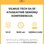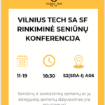 English below! Kviečiame visus Vilniaus Gedimino technikos universiteto studentus į VILNIUS TECH SA SF rinkiminę konferenciją, kuri vyks Saulėtekio al. 11, S2 (SRA-I) A06 auditorijoje, lapkričio 19 d. 18:30. Jos metu bus renkamas naujas VILNIUS TECH SA SF pirmininkas. Registracijos pradžia – 18:10. Konferencijos darbotvarkė: 1. Registracija; 2. Konferencijos atidarymas; 3. Konferencijos pirmininko rinkimai; 4.…