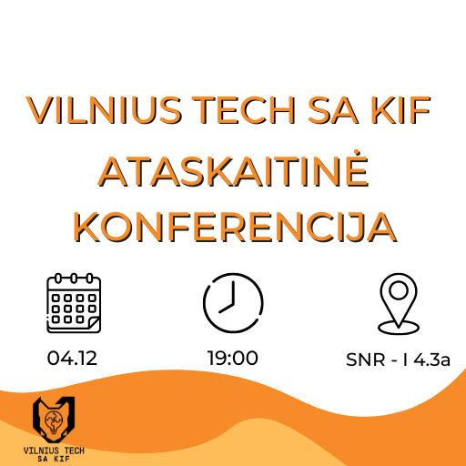 Balandžio 12 dieną, 19:00 SNR – 4.3a auditorijoje vyks VILNIUS TECH SA KIF ataskaitinė konferencija, kurios metu pirmininkas Nikita Zykov pristatys pusės metų veiklos ataskaitą.